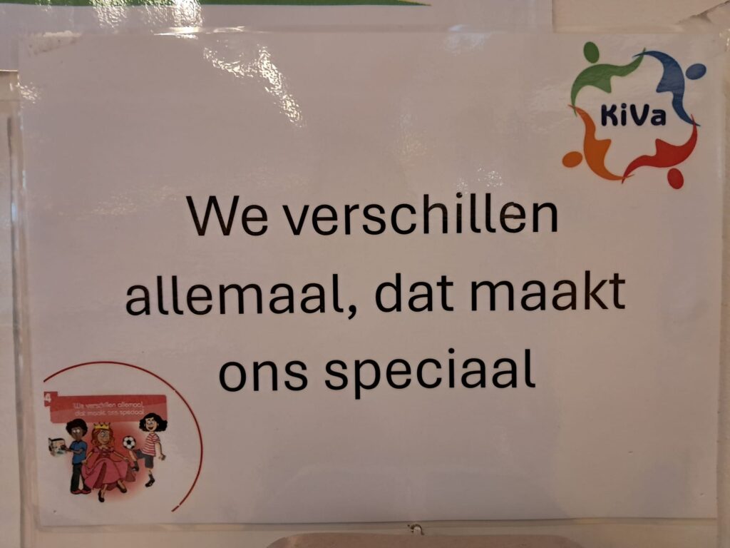 Tot aan de Kerstvakantie gaan we aan de slag met Thema 4 van KiVa. “We verschillen allemaal, maar dat maakt ons speciaal”. De kinderen leren begrijpen dat ieder mens uniek is en even waardevol. Ze leren rekening te houden met iedereen om je heen. En ze accepteren onderlinge verschillen. Het is juist fijn dat we van elkaar verschillen, maakt het allemaal zo veel kleurrijker!