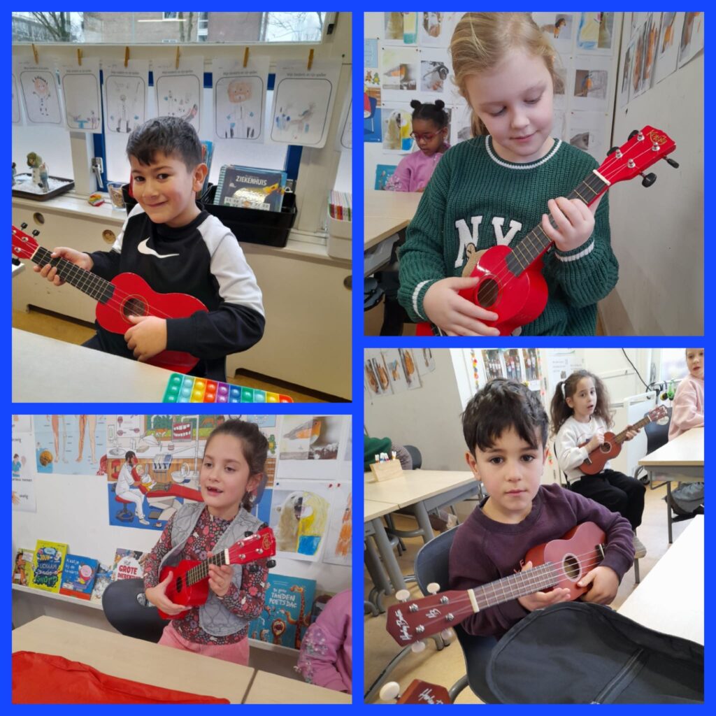 Afgelopen dinsdag was de eerste muziekles van meester Wick. We hebben gezongen en bewogen op muziek. De leerlingen hebben ook weer gespeeld op de ukeleles. We zijn blij dat meester Wick weer terug is op KC Eigenwijze