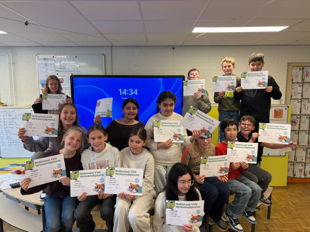 Met trots kunnen wij melden dat alle leerlingen van groep 7 zijn geslaagd voor het theoretisch verkeersexamen! De afgelopen periode hebben zij hard gewerkt om hun verkeerskennis te vergroten. Het is dan ook geweldig om te zien dat iedereen het examen succesvol heeft afgerond. Een knappe prestatie waar we met elkaar trots op mogen zijn! Gefeliciteerd aan alle leerlingen van groep 7, jullie hebben het fantastisch gedaan!