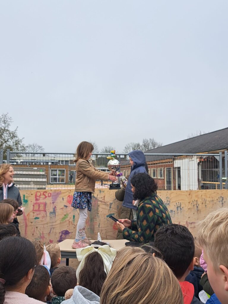 Vanochtend zijn de klassen gestart met een heerlijk ontbijt in de klassen georganiseerd door de Ouderraad. Hartelijk dank voor het organiseren. Daarna was er in de klassen van alles te doen, vooral de wedstrijd eitje tik. In elke klas was uiteindelijk 1 winnaar die aan het einde van de dag tegen elkaar gingen strijden op het schoolplein. Uiteindelijk heeft Fynn van de groene groep de bokaal gewonnen en wat was hij blij. Fijn lang weekend gewenst allemaal.
