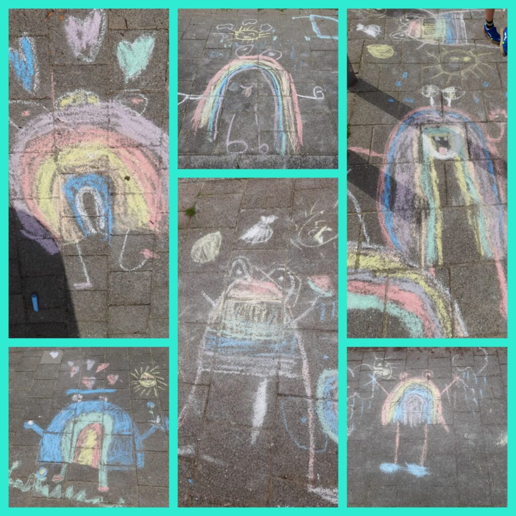 Heeft u deze mooie tekeningen gezien? Groep 3/4 doet mee met een krijt-tekeningen wedstrijd (Krijtje Koning) hopelijk winnen we een mooie prijs en kan de klas naar de bioscoop.